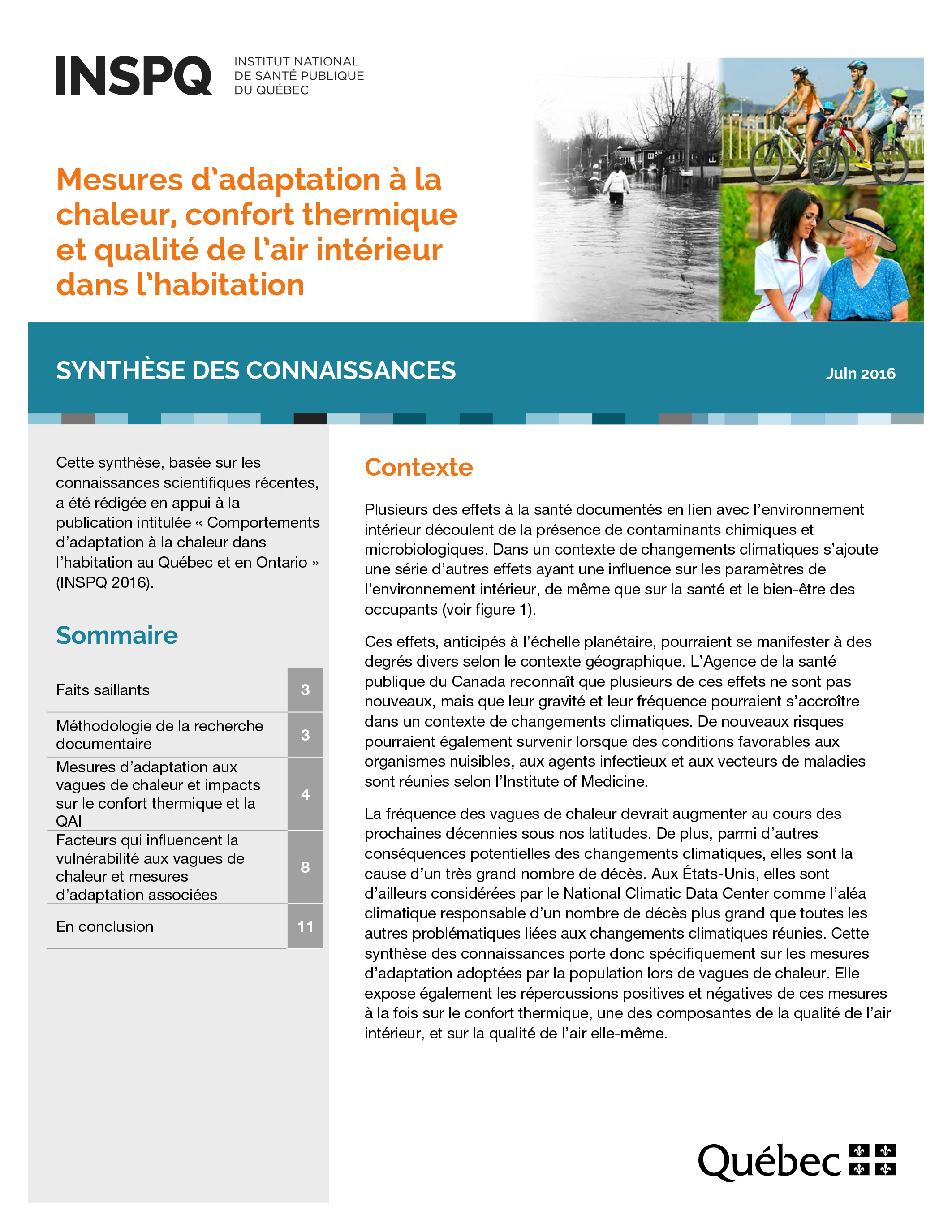 Mesures d’adaptation à la chaleur, confort thermique et qualité de l’air intérieur dans l’habitation | INSPQ – Institut national de santé publique du Québec