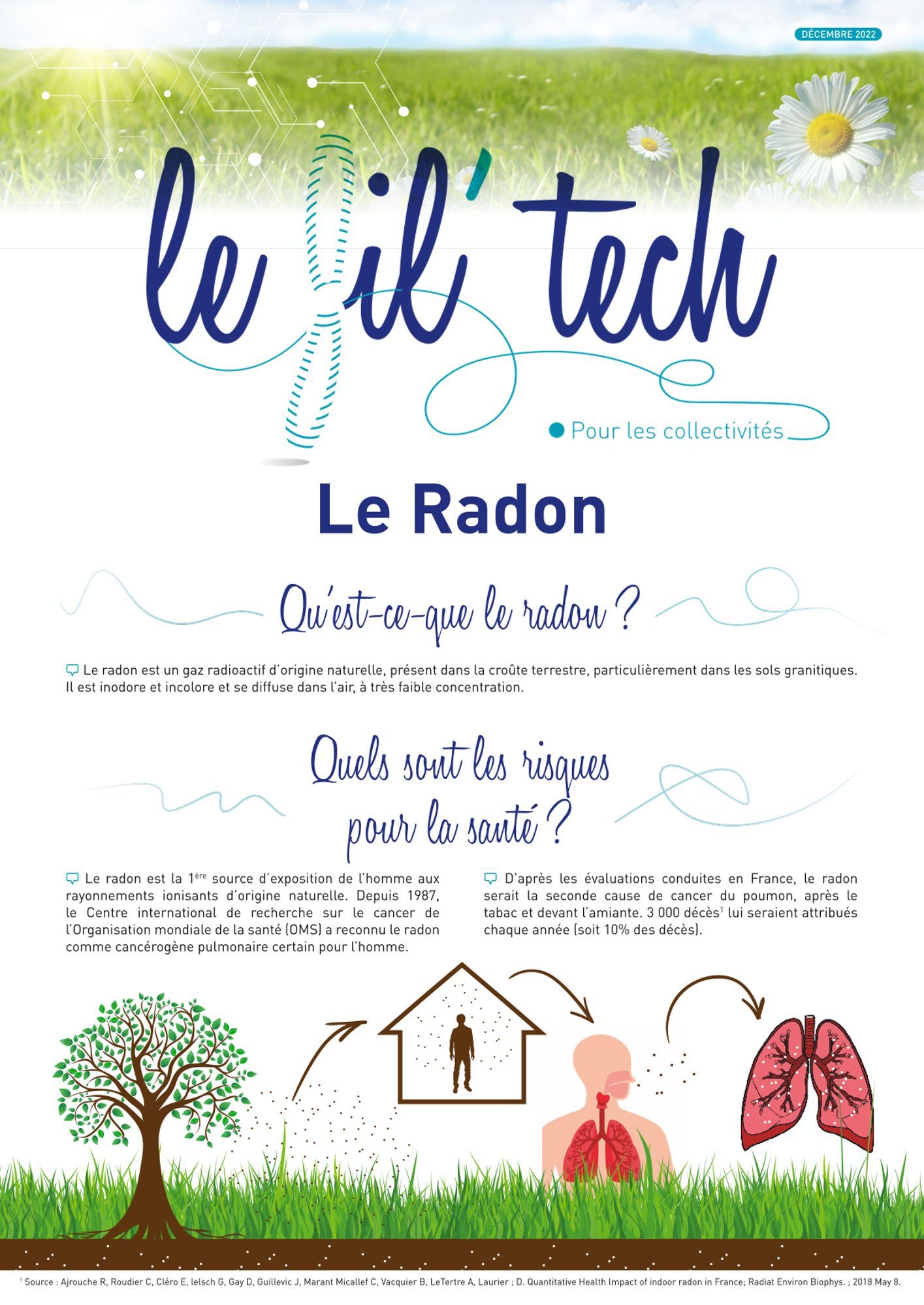 Le radon est un gaz radioactif d’origine naturelle, présent dans la croûte terrestre, particulièrement dans les sols granitiques.
