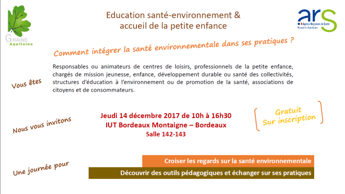 Graine Aquitaine vous invite à participer gratuitement à la journée : Éducation santé-environnement & accueil de la petite enfance : Comment intégrer la santé environnementale dans ses pratiques ?